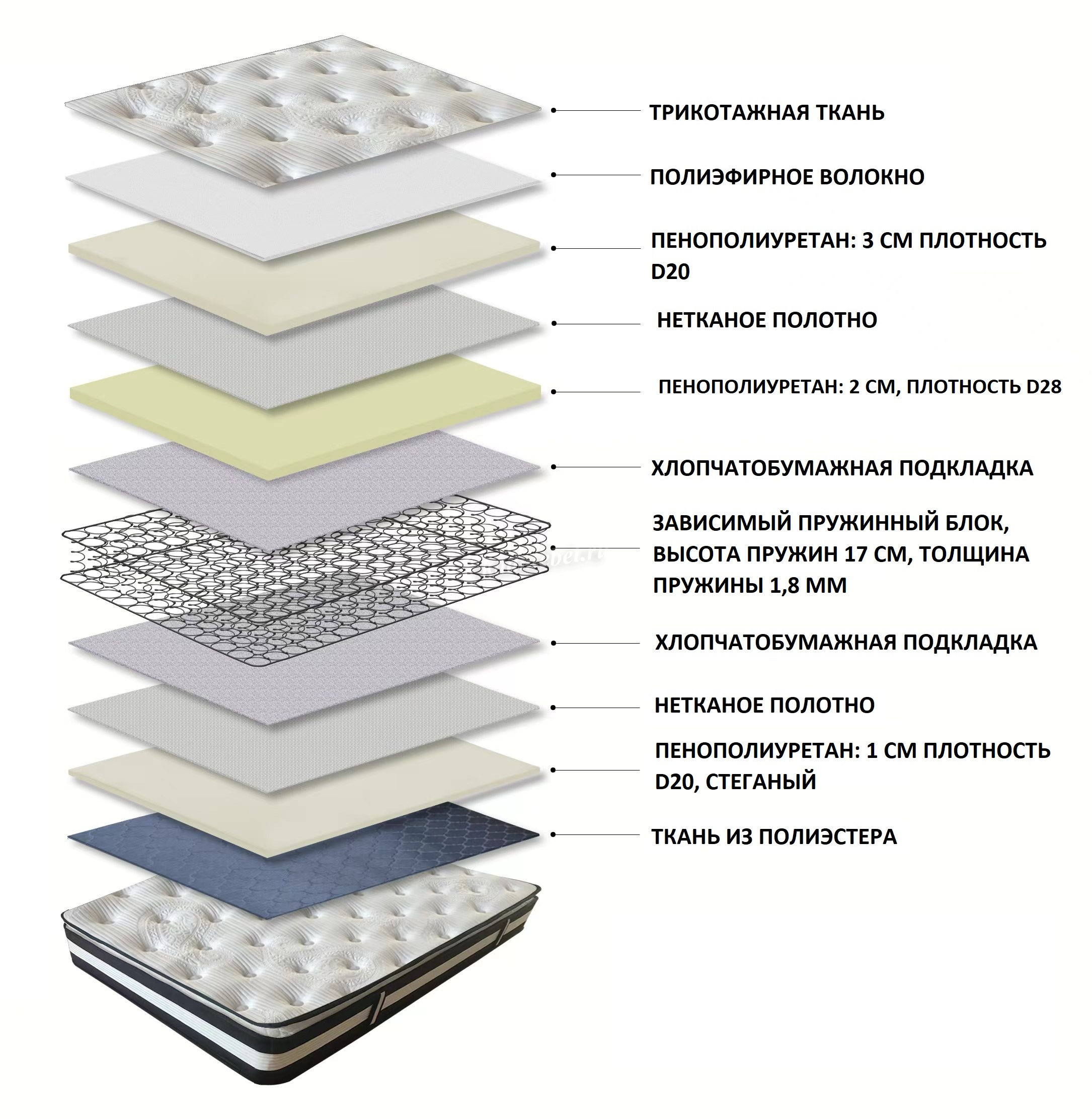 Пенополиуретан: 2 см, плотность D28
