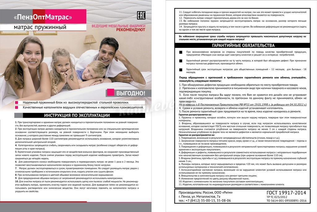 Описание Матрас Медиум 800*2000