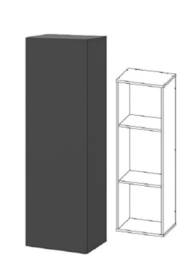 Пенал навесной со стеклом. Крепится к стене на врезные навесы скрытого крепления. Дверка открывается с помощью толкателя. Створка единая, стекло простое (прозрачное). За дверкой две стеклянные полки.