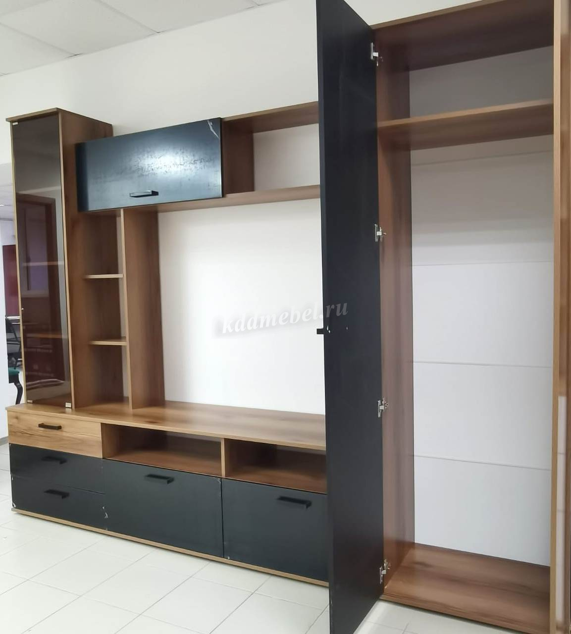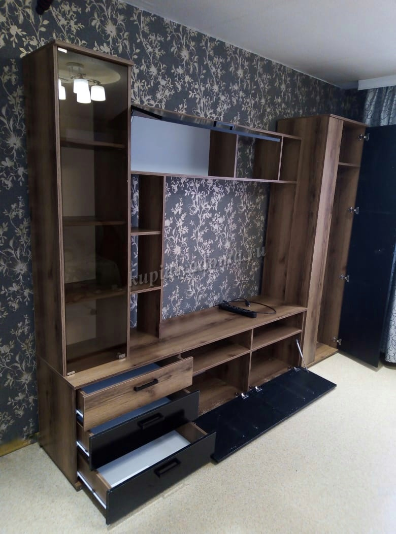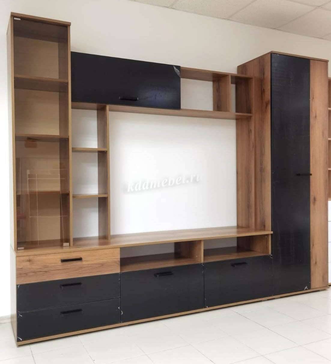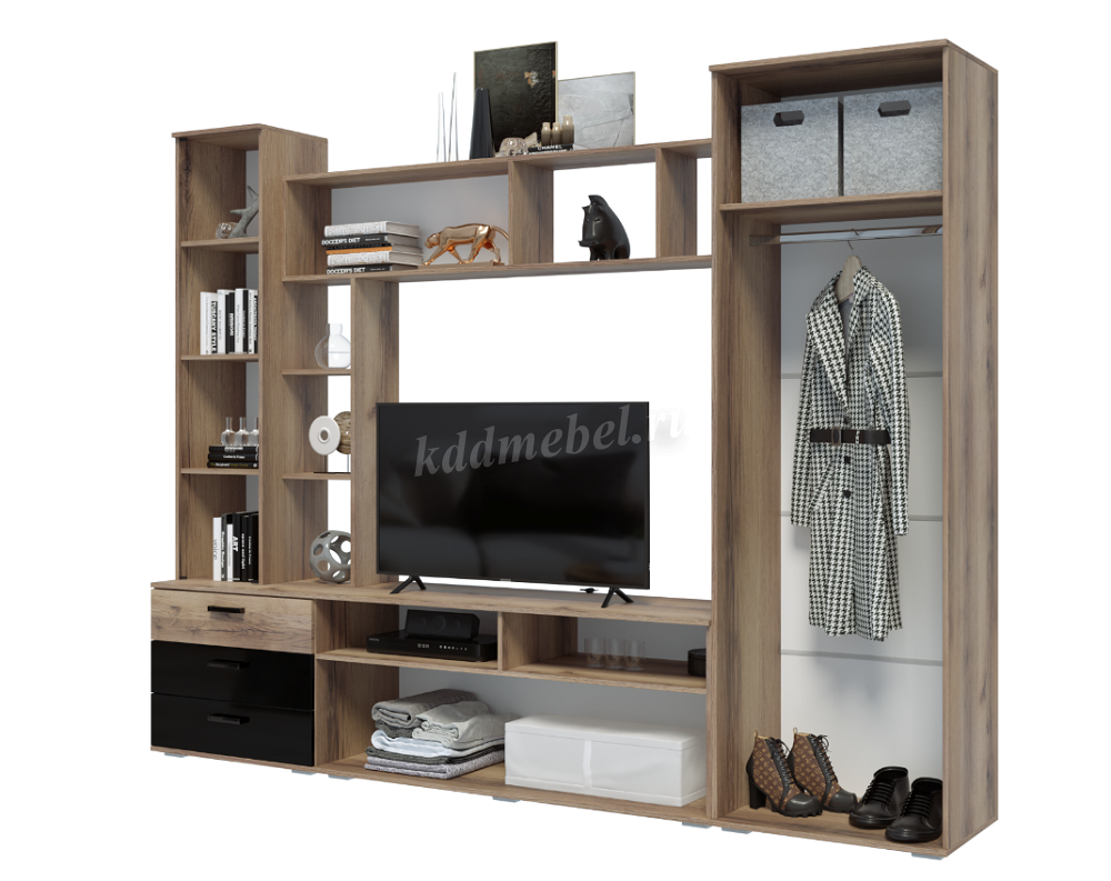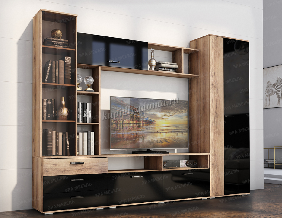 Описание Гостиная Крокус (Дуб делано/Черный глянец)