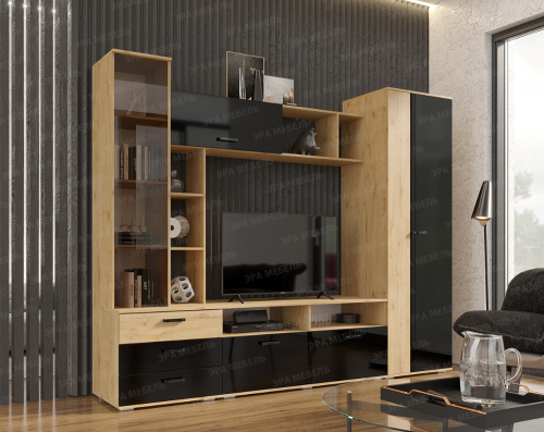Гостиная Крокус (Дуб вотан/Черный глянец)