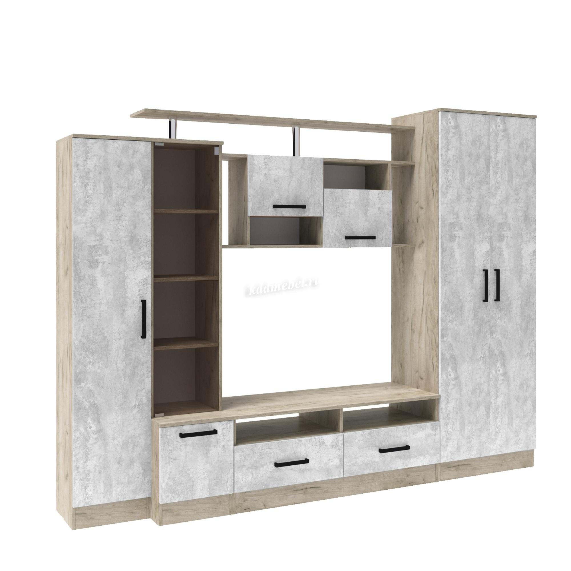 Гостиная Оскар-5 (Дуб крафт серый/Цемент)
