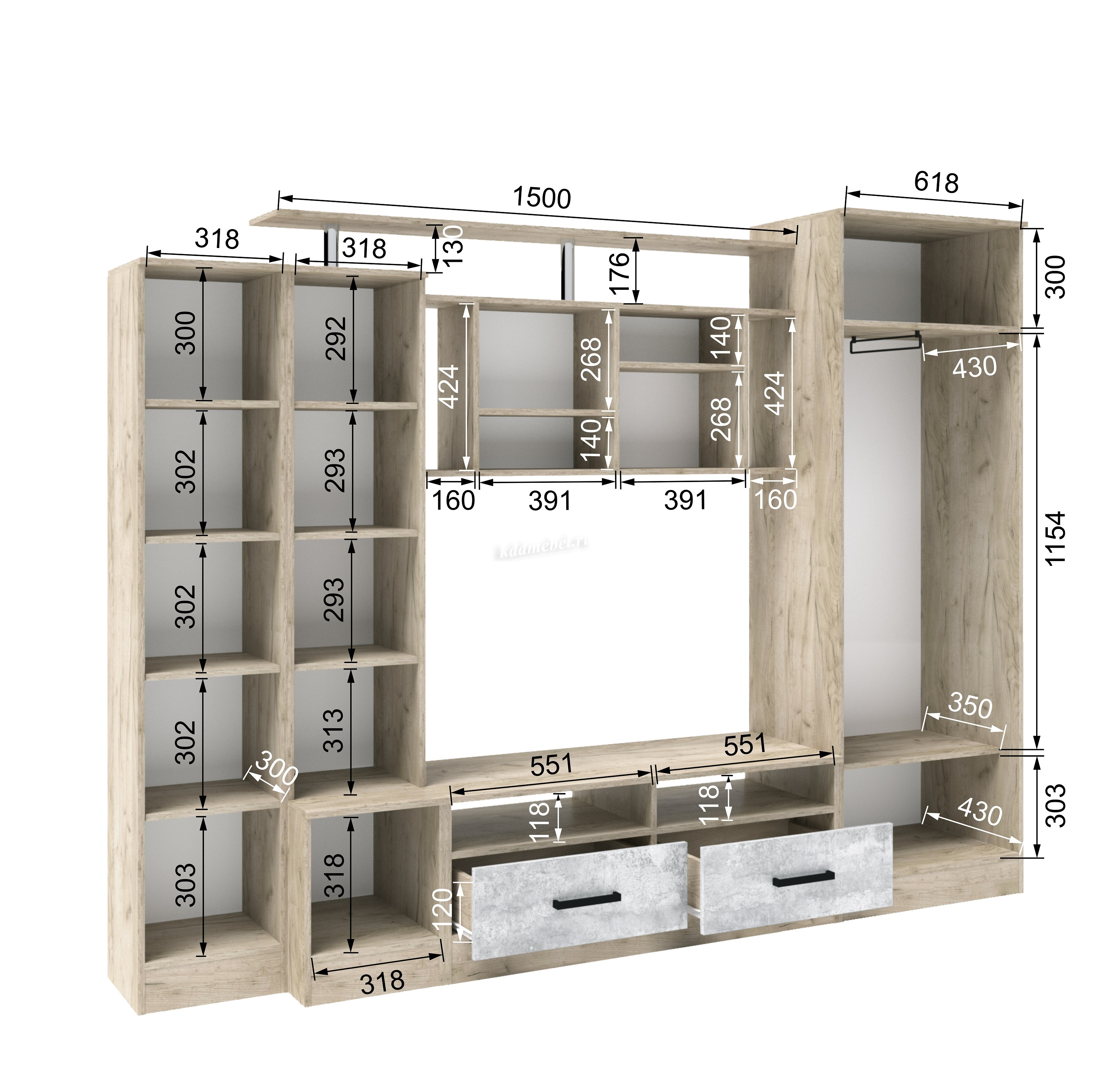 Ниша под ТВ:750*1150 мм