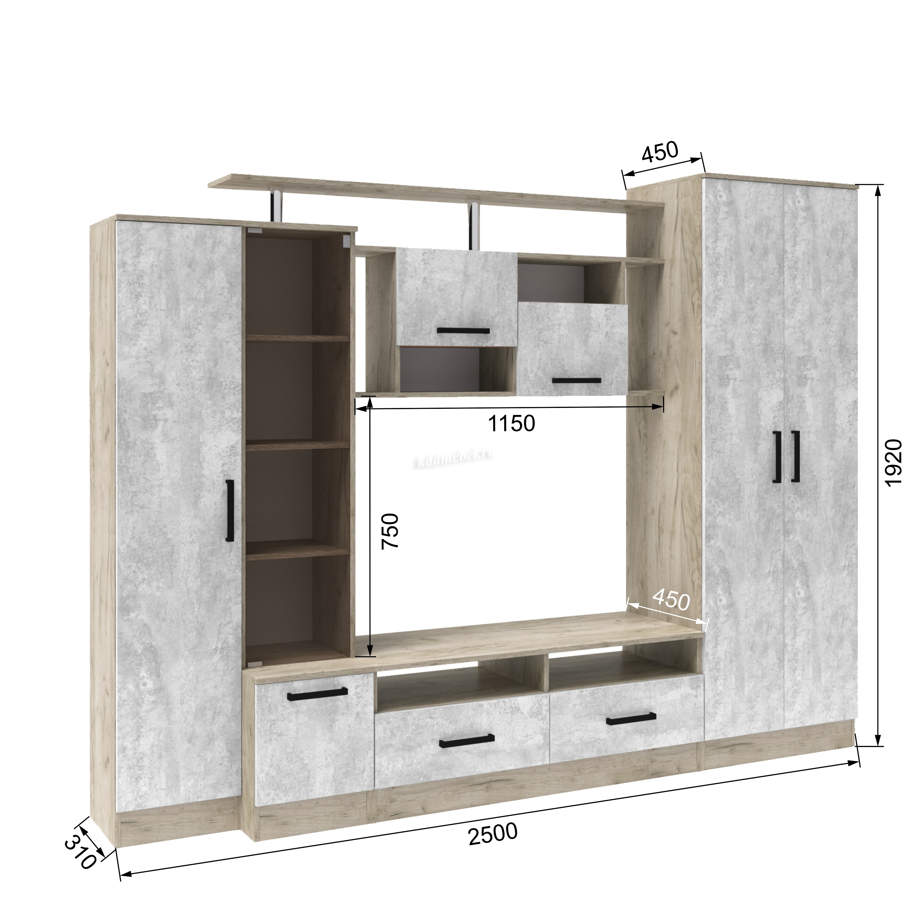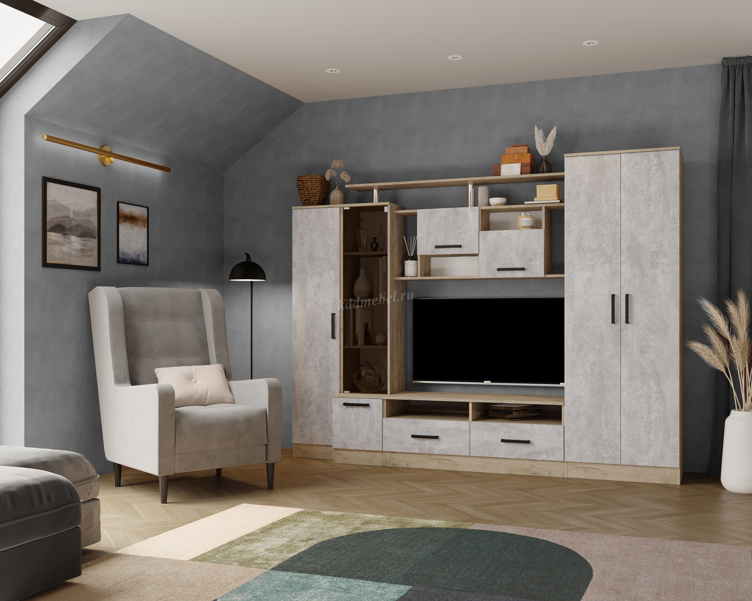 Описание Гостиная Оскар-5 (Дуб крафт серый/Цемент)