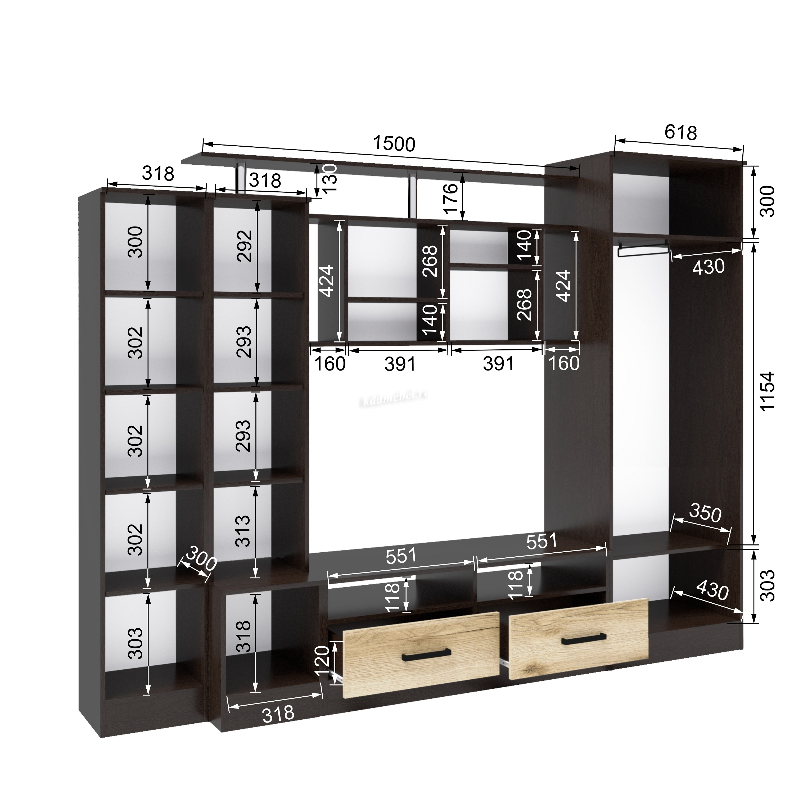 Ниша под ТВ:750*1150 мм
