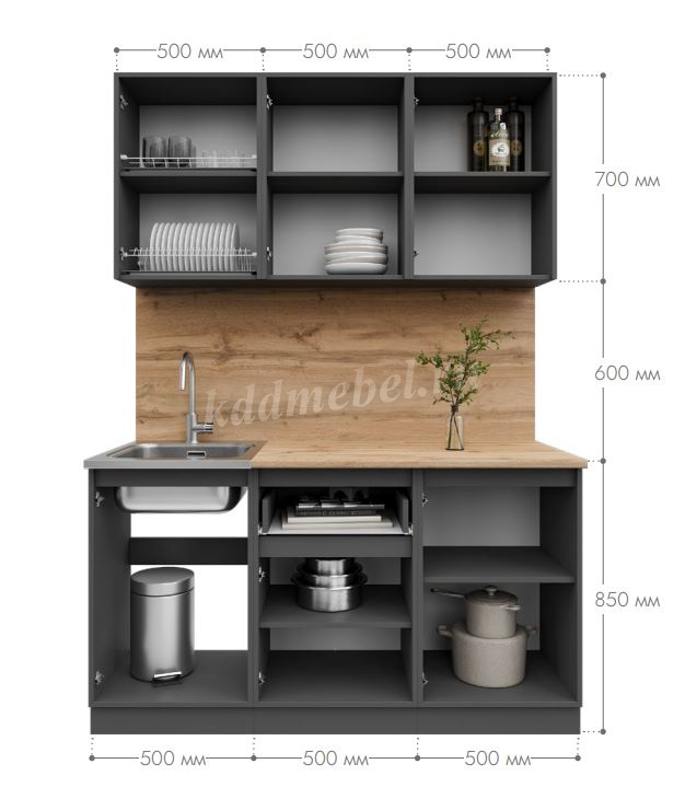 Кухня Лето 1,5 (Графит) наличие товара: