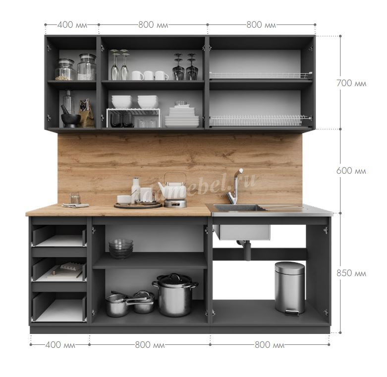 Здравствуйте! Нужен гарнитур 1600мм без мойки. Возможен вариант: два шкафа навесных по 800мм и нижних - два шкафа с ящиками по 400мм и один шкаф 800мм со сплошной столешницей 1600мм?