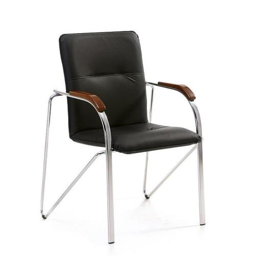 Удобный стул с обивкой из высококачественной экокожи (DO) и эргономичными подлокотниками, которые украшают деревянные накладки.