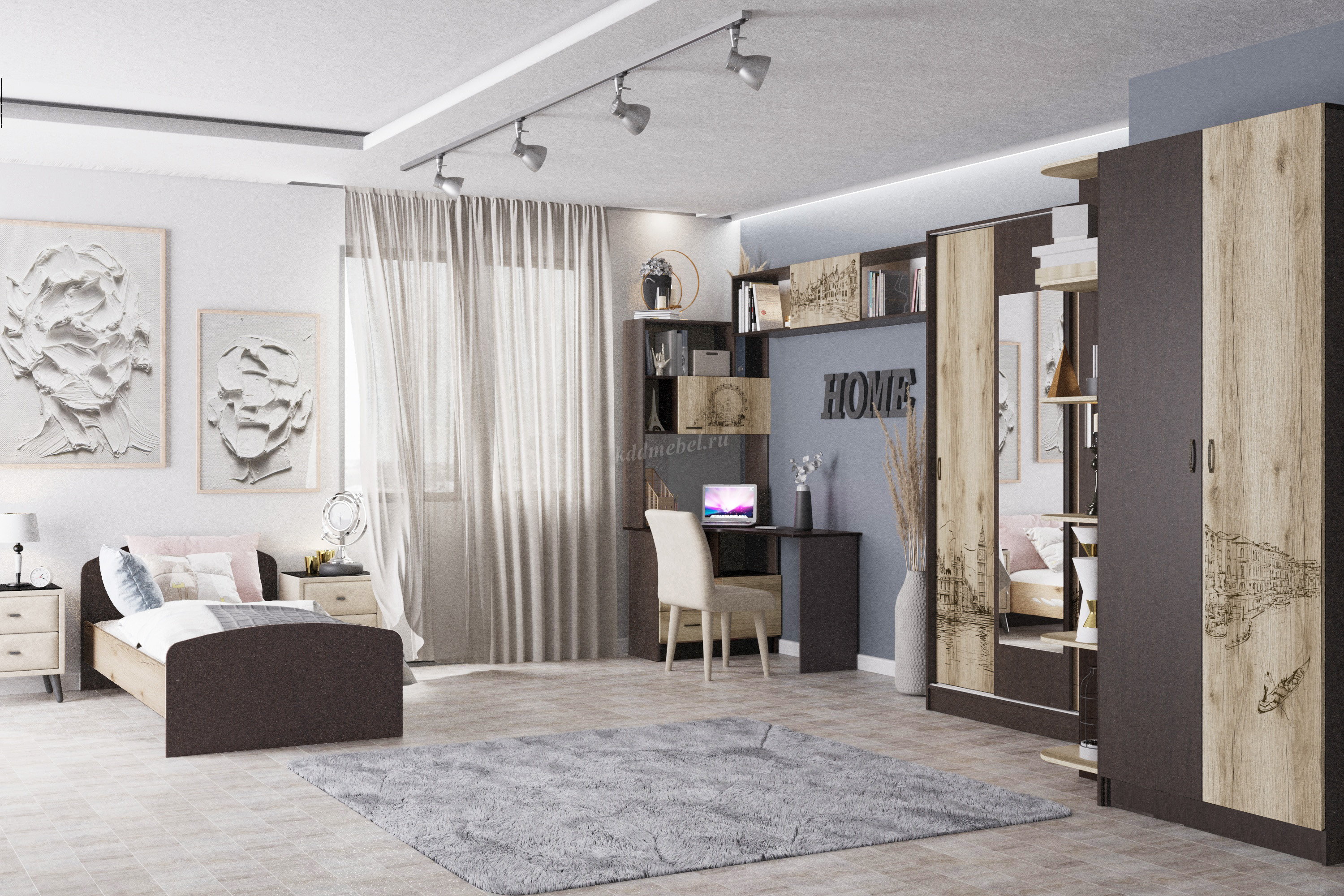 Композиция для детской спальни Орион - идеальное решение как для просторной комнаты, так и для малогабаритной квартиры. Широкий выбор модулей: функциональная кровать-чердак с встроенным шкафом, пенал с выдвижными ящиками, полноценный комбинированный шкаф со стандартной штангой и полками. Классические цвета исполнения прекрасно сочетаются с дизайнерскими изображениями городов мира, наненсенными на фасады методом цветной фотопечати.