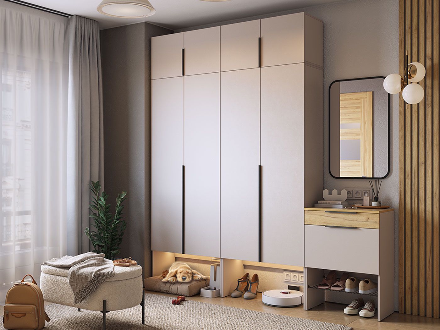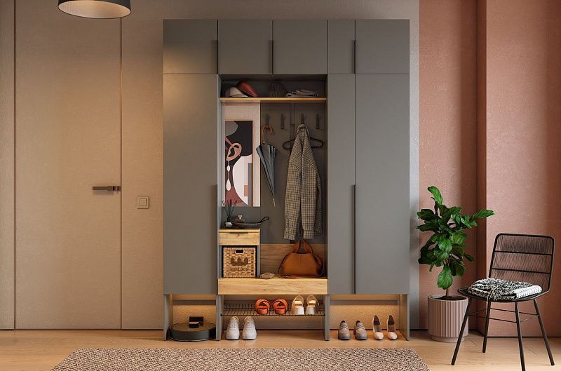 Прихожая "Баско" сочетает в себе современный дизайн и практичность, становясь незаменимым элементом вашего интерьера, который поможет поддерживать порядок и уют в доме.
