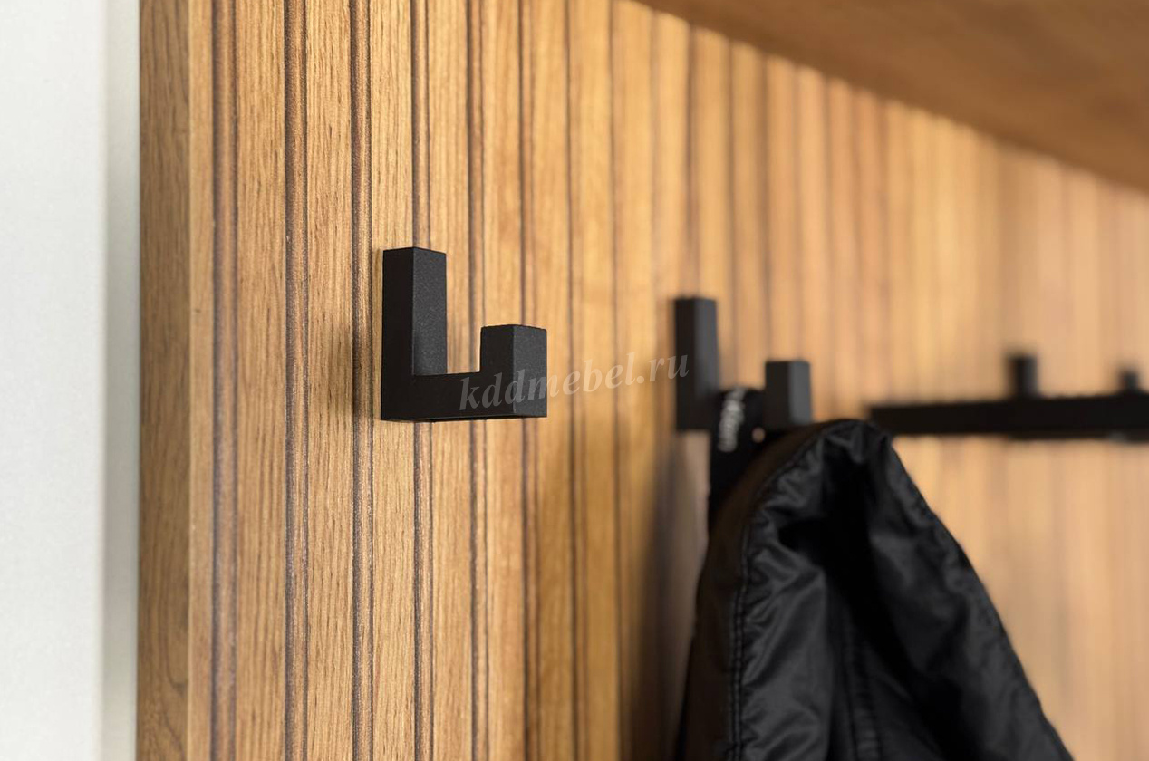 Вешалка 3 "Бодрум" – стильное и функциональное решение для организации пространства в вашем доме. Эта вешалка сочетает в себе элегантный дизайн и практичность, идеально подходя для прихожей, спальни или гостиной. Принт, имитирующий вертикальную фрезеровку придает вешалке уникальный и современный вид, добавляя текстуру и глубину. Крючки предоставляют удобное место для хранения верхней одежды, сумок или аксессуаров. Держатель для плечиков позволяет организовать хранение одежды, сохраняя ее в идеальном состоянии. Полка служит дополнительным пространством для хранения головных уборов.