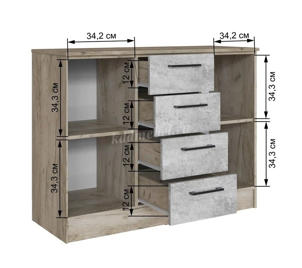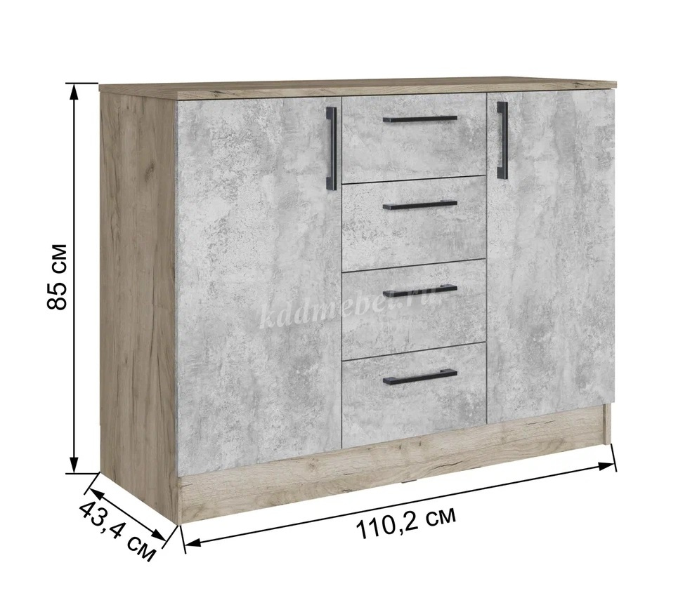 Описание Комод Вегас (Дуб крафт серый/Цемент)