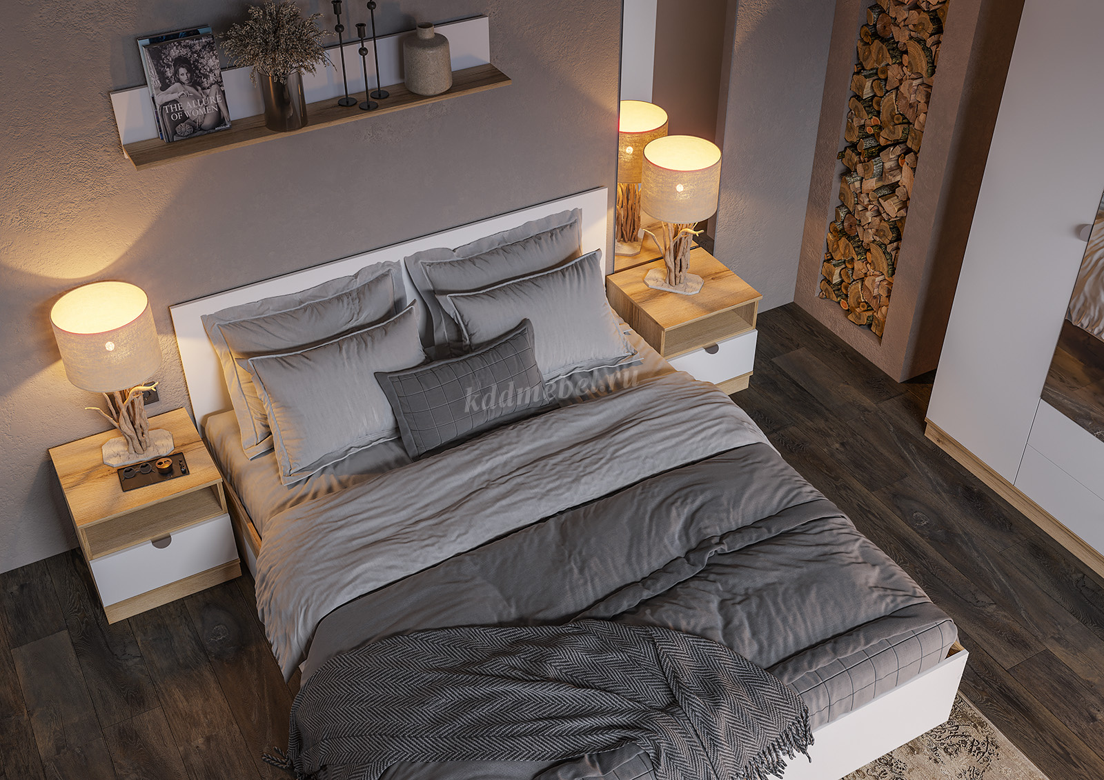Описание Тумба прикроватная Юкки (Дуб делано/Белый шагрень)