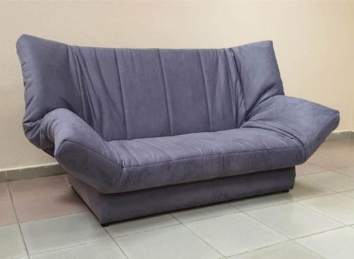 Диван снабжен большим бельевым ящиком и съемным чехлом, защищающим обивку от загрязнений и повреждений. Обивка может быть сделана из ткани или искусственной кожи, что придает особую респектабельность. Возможен комбинированный вариант: ткань и кожзам. Каркас: металлический профиль, наполнитель: ортопедическое основание из березовых лат, высокоэластичный ППУ, синтепон, короб для белья: ДСП, ДВП.