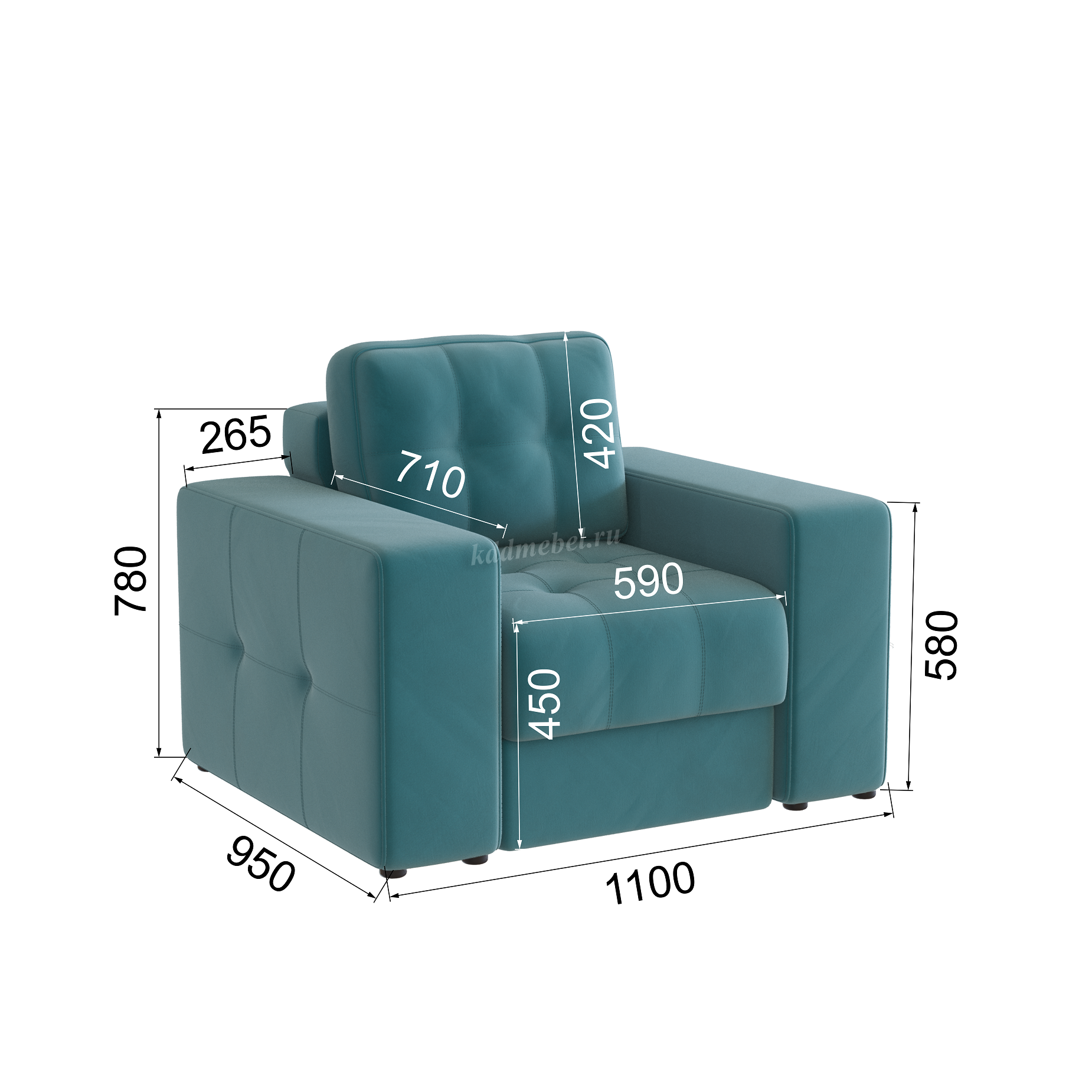 Подлокотники шириной 265 мм, обтянутые тканью и простеганные двойной отделочной декоративной строчкой.