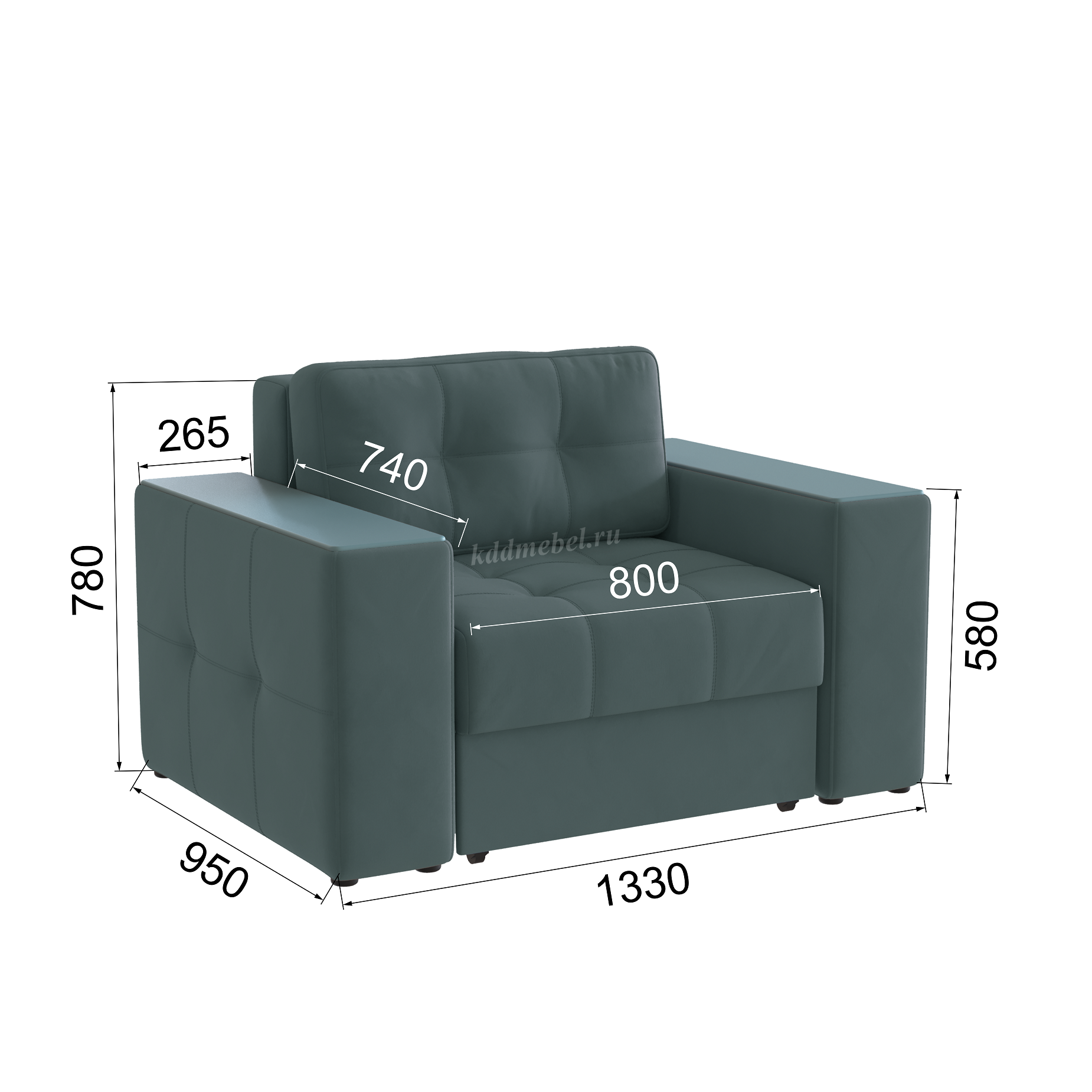 Подлокотники шириной 265 мм, обтянутые тканью и простеганные двойной отделочной декоративной строчкой.