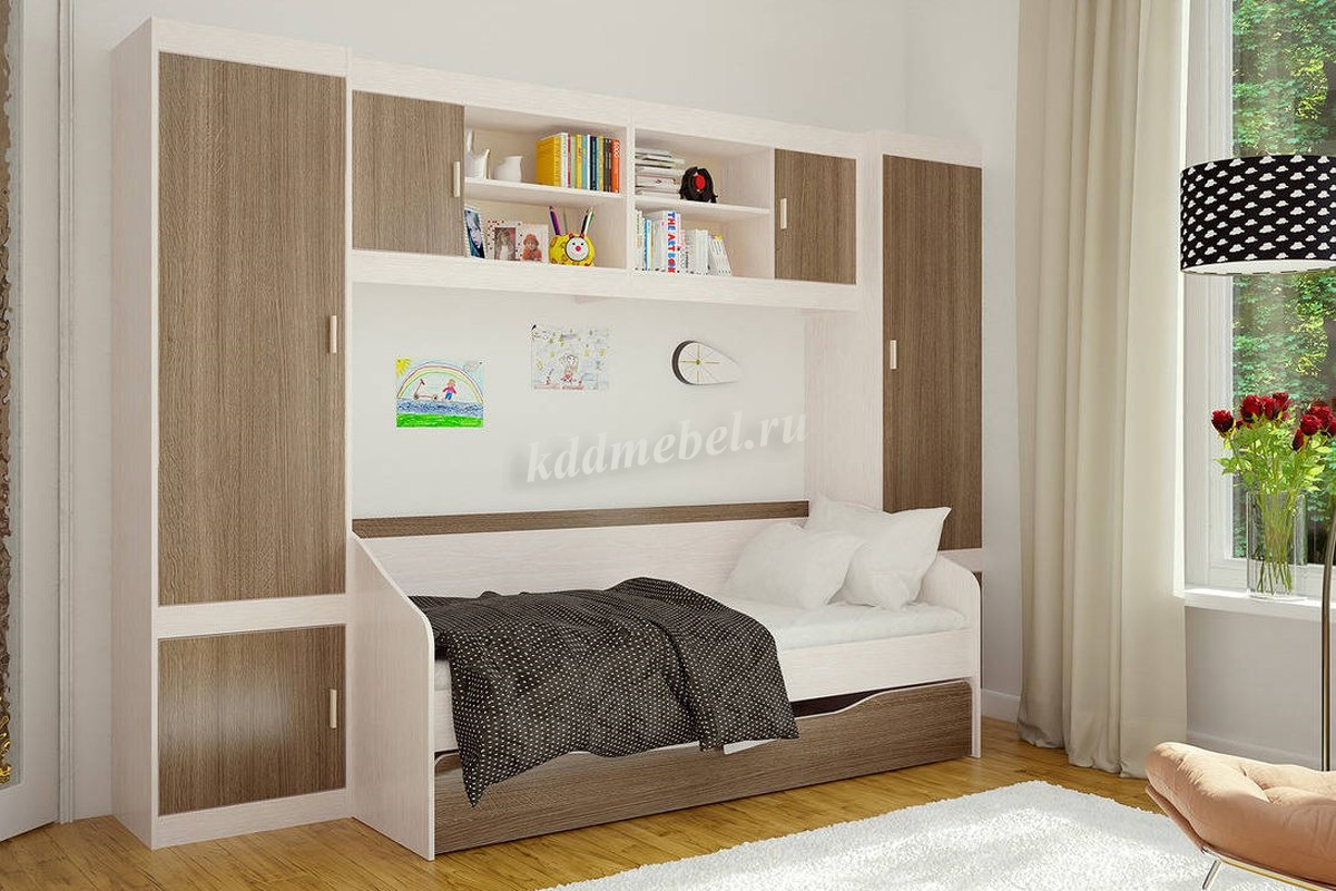 Детский гарнитур Паскаль понравится не только детям, но и родителям. Благодаря обилию модулей в комнате Вашего ребёнка всегда будет порядок. Письменный стол с тумбой, навесная полка, многофункциональная кровать, а также вместительный пенал и полки позволят оптимально разместить все игрушки и учебные принадлежности. Из всего этого многообразия стоит обратить особое внимание на универсальную кровать с выкатным ящиком, который можно использовать или как дополнительное спальное место, размещая в нем дополнительный матрас, или как место для хранения игрушек либо постельных принадлежностей. Цвет детской настолько универсален, что подойдет как для мальчика, так и для девочки.