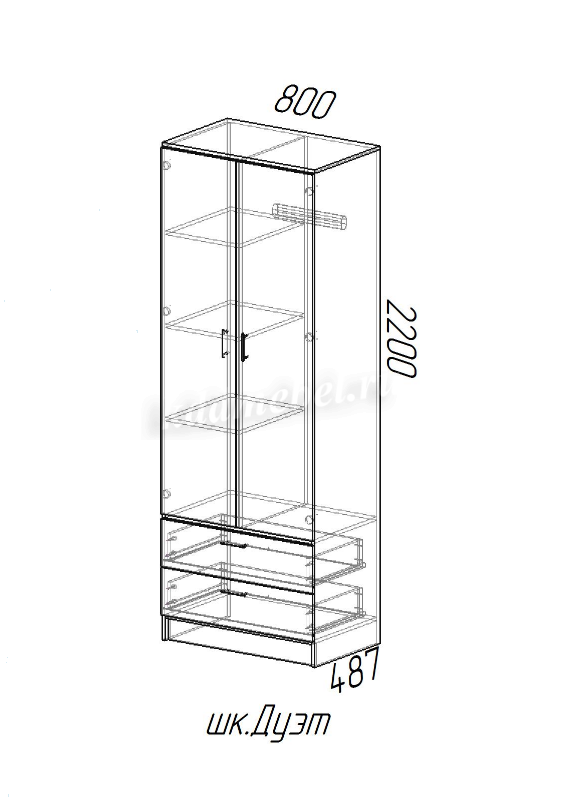 Описание Шкаф Дуэт комбинированный без зеркала (Венге/Лоредо)