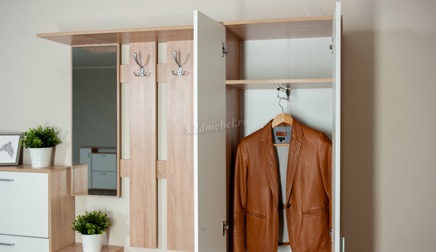 Шкаф «Интер» - это удобное и функциональное место для хранения верхней одежды, обуви, сумок. Выполнен в стиле минимализм: простота, строгая геометрия, отсутствие декора. Благодаря классической нейтральной цветовой гамме гармонично впишется в любой интерьер. Подойдет для небольшой прихожей. Может использоваться как отдельный модуль, так и в составе с прихожей «Интер».