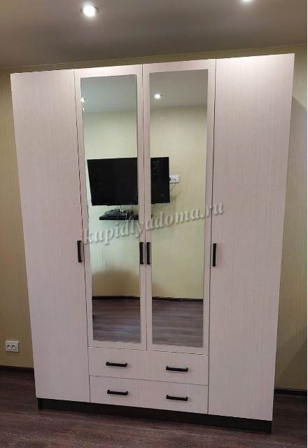 Вместительный четырехдверный шкаф "Нарцисс-3"с зеркальными фасадами — оптимальное решение для хранения одежды в спальне или прихожей. Изящное исполнение в лучших традициях стиля украсит интерьер и принесет в него уютные нотки. Внутреннее наполнение шкафа предусматривает просторные универсальные отделения для хранения белья и одежды. Посередине расположена платяная секция со штангой для вешалок, а по бокам находятся два отдела с полками.