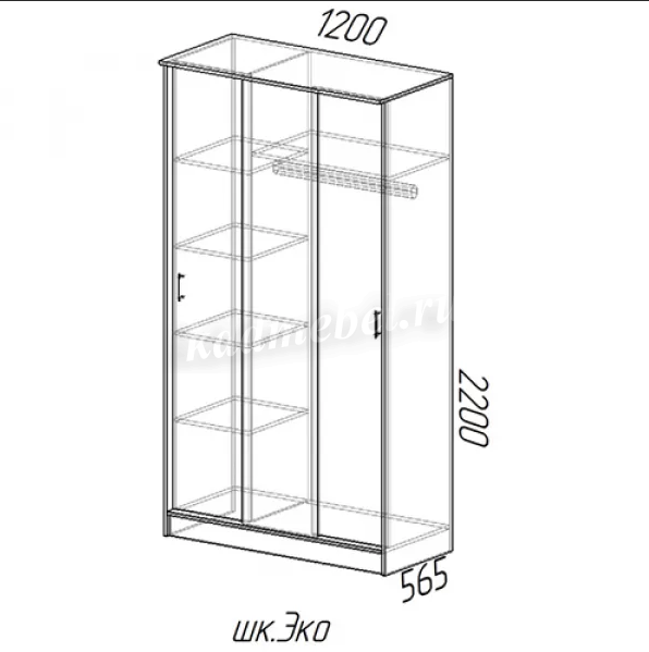 Габариты: 1200(Ш) Х 2200(В) Х 565(Г)- Зеркало. Полки. Штанга.