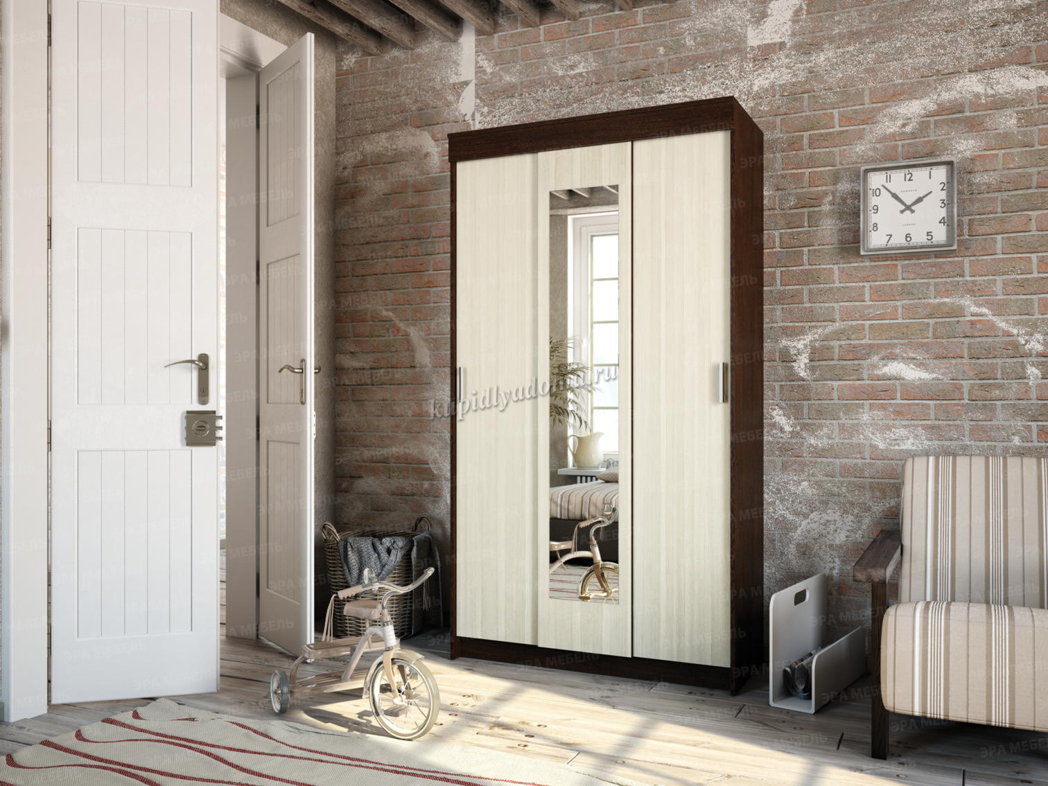 Шкаф-купе Эко станет настоящим украшением спальни или гостиной. В нем можно разместить все необходимые вещи и поддерживать в квартире порядок. Цвет: венге-лоредо