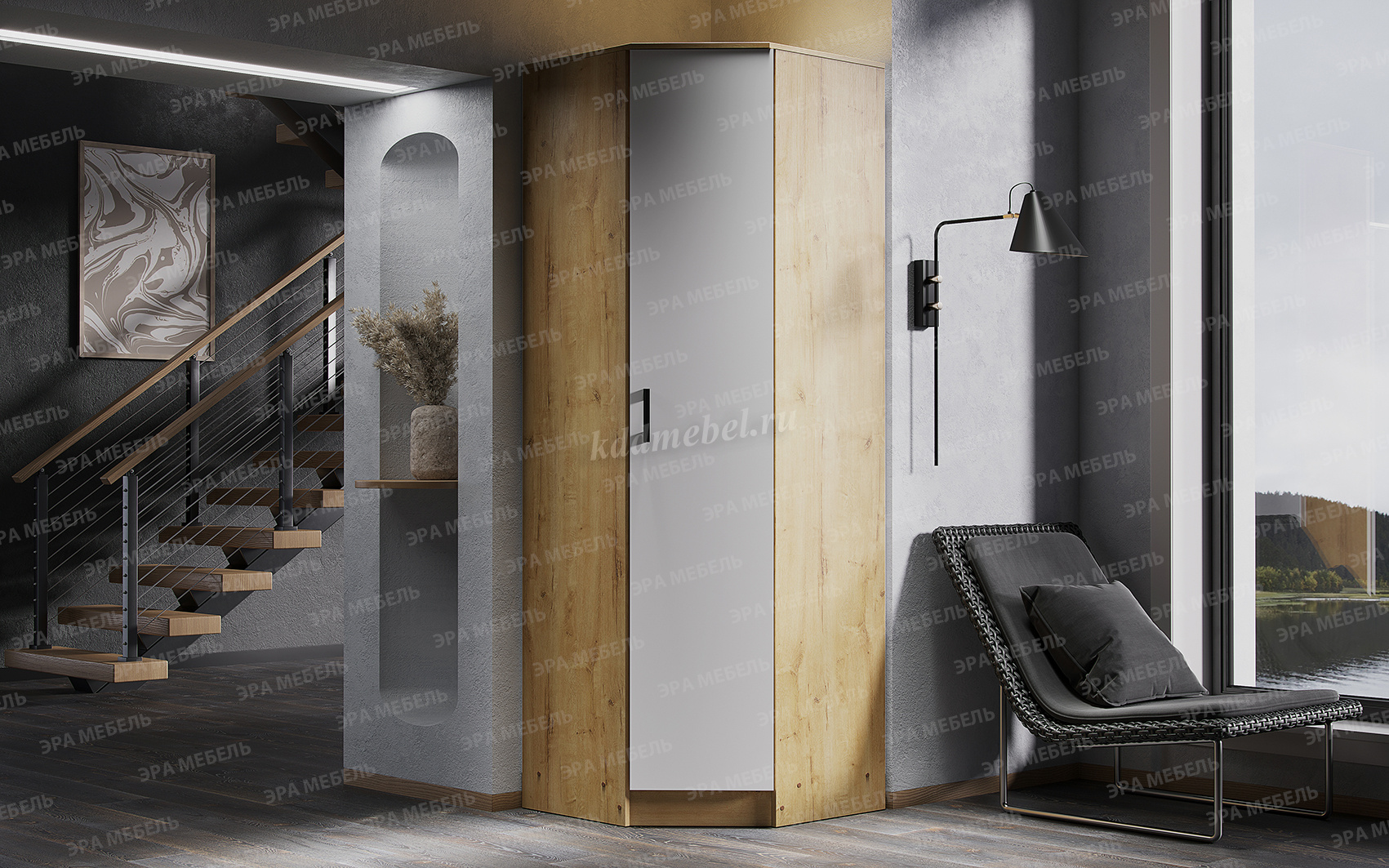 Описание Шкаф угловой Эра (Дуб вотан/Белый)