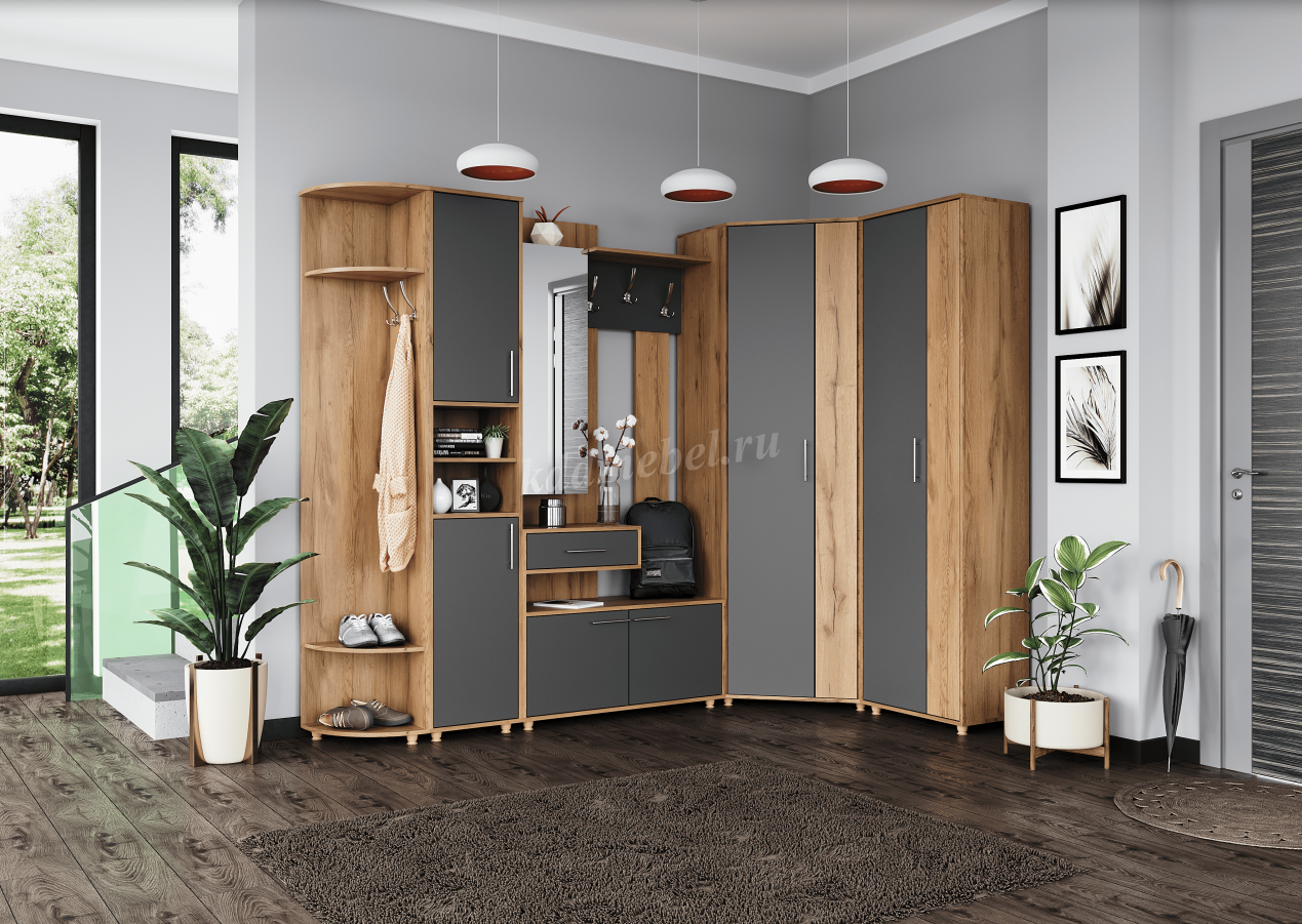 Описание Шкаф угловой Граф (Дуб золотистый/Темно серый лофт)