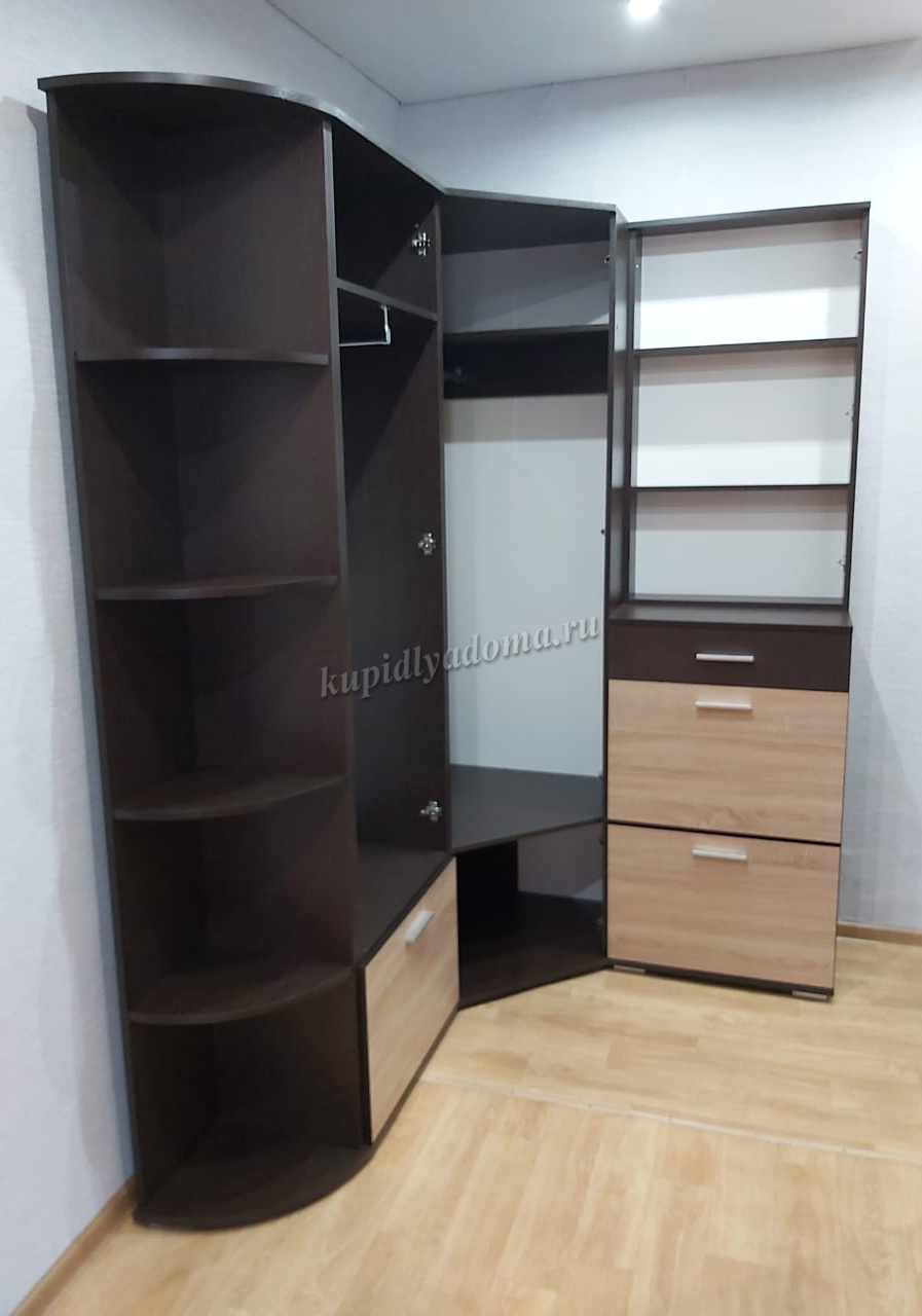 Шкаф позволяет рационально использовать пространство и будет хорошо смотреться даже в небольшой комнате, служит связующим звеном для составления угловой системы хранения. Корпус цвета венге подчеркивают древесную текстуру и рисунок светлого дуба сонома, придает эффектный вид. Внутри предусмотрены полки для белья и отделение с металлической овальной штангой. Идеально компонуется со всеми модулями системы Виола.